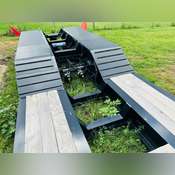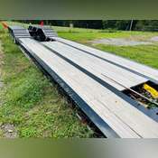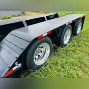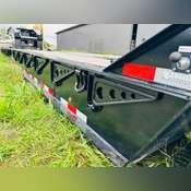 Non- Ground Bearing, Fully Self Contained with Pony Motor, Dual King Pin, Adjustable Neck, LED Work Lights, Aluminum Outside Wheels, 254/70R22.5 Tires, Cush Air Ride Suspension, Air Lift Third Axle, Strobe Lights, Boom Well, Outriggers, Lashing D’s, Full Steel Fenders, 26’ Well x 102” Wide, Plumbed for 4th Flip
