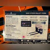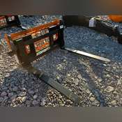 Unused 2024 Skid Steer Pallet Fork Fork Rating:4,000 lbs Mounting:Universal Skid Steer Forks:48 in Long Adjustable With Locks Side Steps:2 Headache Rack:Beveled Fork Tines LxWxH:48" x 4" x 1 1/2" Class II Weight:420 lbs