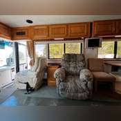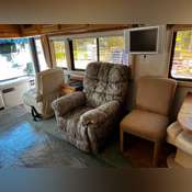 Inside, enjoy modern amenities including a Phillips Navigation System, Direct TV satellite capabilities, a 36-inch Samsung TV, Samsung Blu-Ray player, Panasonic VCR player, and a Panasonic 7-inch wide-color LCD monitor with receiver.