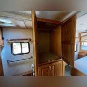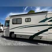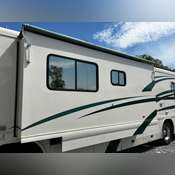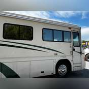 Convenience features include automatic retractable entry steps, Slide Master slide-in/out storage compartments, and a single 24-inch slide-out expanding living space. The exterior is enhanced by a retractable awning and a front Plexiglass bug guard. Riding on sturdy 275/70R22.5 tires and equipped with reliable 15"x4" front air drum brakes, safety and comfort are priorities.