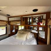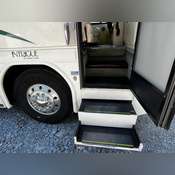 Built on a dependable chassis with air brakes and HWH computerized leveling, it offers a smooth and stable ride. Equipped with large-capacity tanks, including a 110-gallon diesel fuel tank, 100-gallon freshwater tank, 75-gallon gray water tank, and a substantial 42.4-gallon propane tank, it ensures extended trips with minimal stops.