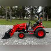 Selling as a complete package, this pristine 2024 Kioti CX2510 HST Compact Tractor is in excellent condition with only 28 hours of use. This reliable 4WD tractor features a Kioti KL2510 Front Loader (SN: NLG1A0764) equipped with a 49.5" general-purpose smooth bucket, skid-steer-style quick coupler, durable roll bar, 3-point hitch, PTO, and a powerful 1.647L Engine Model 3A165 paired with smooth Hydrostatic Transmission.